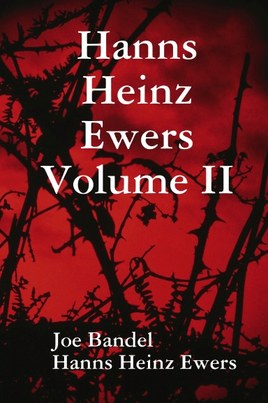 This is the second volume in a collection of short stories by Hanns Heinz Ewers and translated by Joe E. Bandel and includes: “The White Maiden”, “Eleven Thousand Virgins and the Four Holy Three KIngs”,”The Water Corpse”, “Carnival in Cadiz”, “How Eleven Chinese Devoured Their Bride”, “From the Journal of an Orange Tree”,”Of Geese, Spirits, Leeches and the Cat Organ”,”Fairyland”,”Alraune and her Chauffeur”, “The Last Will and Testament of Stanislawa d’Asp”, “Mamaloi”,”The Worst Betrayal”, “The Lost Monkey”, plus a short introduction by Joe E. Bandel. This book is available as a hardcover, paperback and as a Kindle edition.